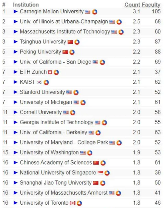 该排名以全球高校和研究机构在计算机领域的顶级学术会议上发表论文数量作为主要依据,强调学术影响力和国际活跃度,相对于传统的排名方法更能体现出院校在CS领域的真正实力以及师资力量,因此非常有参考价值。